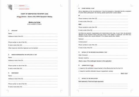 對于如何提交仲裁申請?王雯佳提醒,向CAS臨時仲裁庭提交申請應以書面形式提交,以英文、法文或西班牙文書寫。當事人可在CAS臨時仲裁庭辦公室獲得一份標準申請表。
