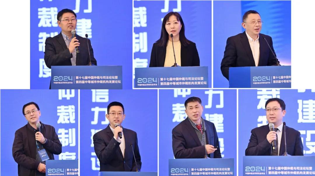 (第五議題“如何提升仲裁案件辦理的質(zhì)效”,從左至右、從上到下:崔新民、張燁、梅永紅、李剛、劉彤、張修林、薛文成)