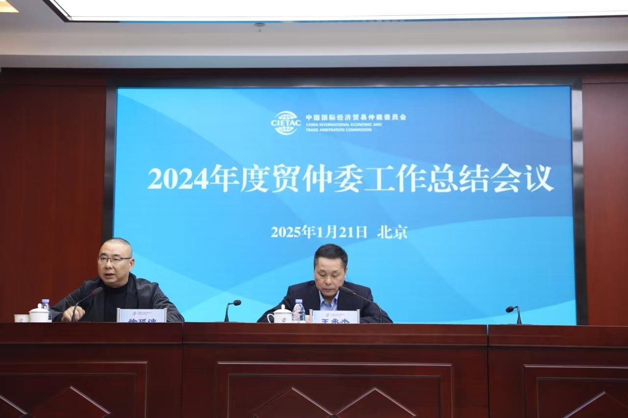 2025年1月21日,貿(mào)仲委2024年度干部職工總結(jié)大會在京召開。貿(mào)仲委全體領(lǐng)導(dǎo)班子成員、總分會干部職工齊聚一堂,共同回顧2024年工作成果,分析面臨的新形勢,全面部署2025年重點工作任務(wù)。貿(mào)仲委副主任兼秘書長王承杰作2024年工作報告,貿(mào)仲委黨委書記徐延波主持會議。