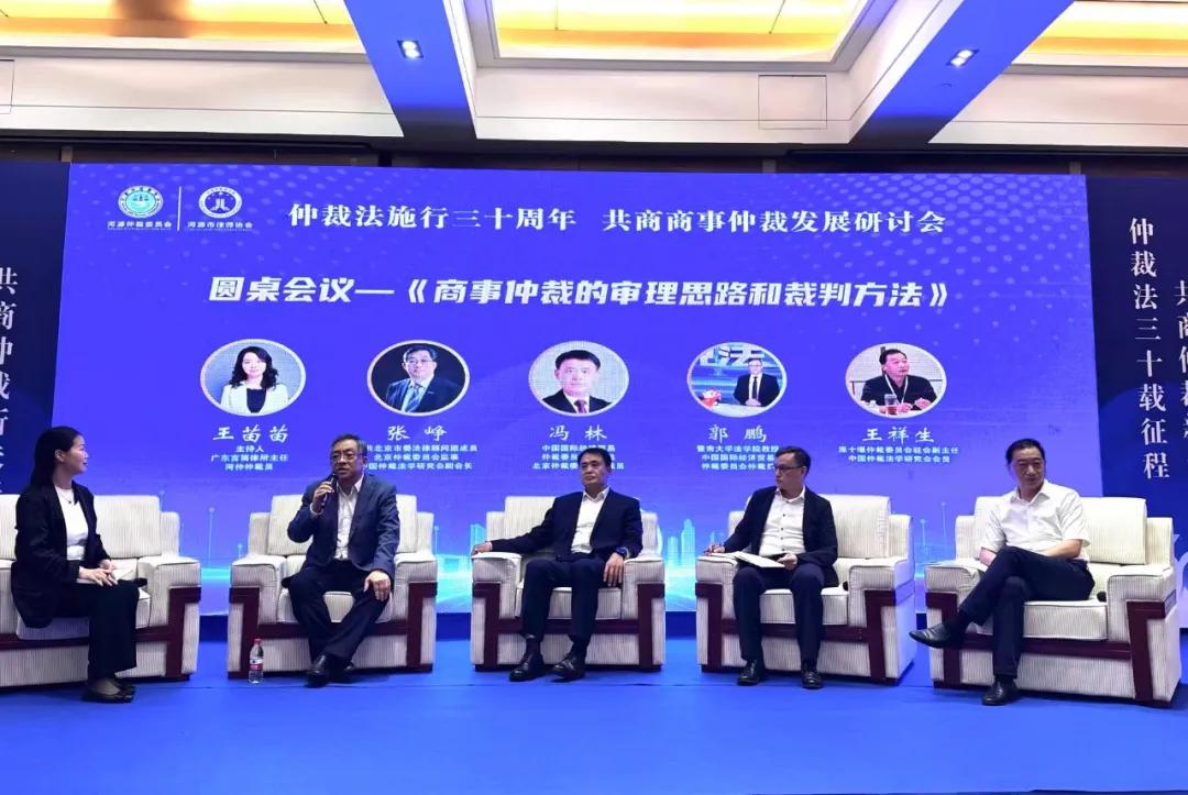 圓桌論壇環(huán)節(jié),由廣東言簡(jiǎn)律所主任、河源仲裁委員會(huì)仲裁員王苗苗擔(dān)任主持,并特邀中共北京市委法律顧問(wèn)團(tuán)成員、北京仲裁委員會(huì)監(jiān)事、中國(guó)仲裁法學(xué)研究會(huì)副會(huì)長(zhǎng)張崢,中國(guó)國(guó)際經(jīng)濟(jì)貿(mào)易仲裁委員會(huì)仲裁員、北京仲裁委員會(huì)仲裁員馮林,暨南大學(xué)法學(xué)院教授、中國(guó)國(guó)際經(jīng)濟(jì)貿(mào)易仲裁委員會(huì)仲裁員郭鵬以及原十堰仲裁委員會(huì)駐會(huì)副主任、中國(guó)仲裁法學(xué)研究會(huì)會(huì)員王祥生,共同圍繞“商事仲裁的審理思路和裁判方法”這一主題展開(kāi)深入探討與經(jīng)驗(yàn)分享。