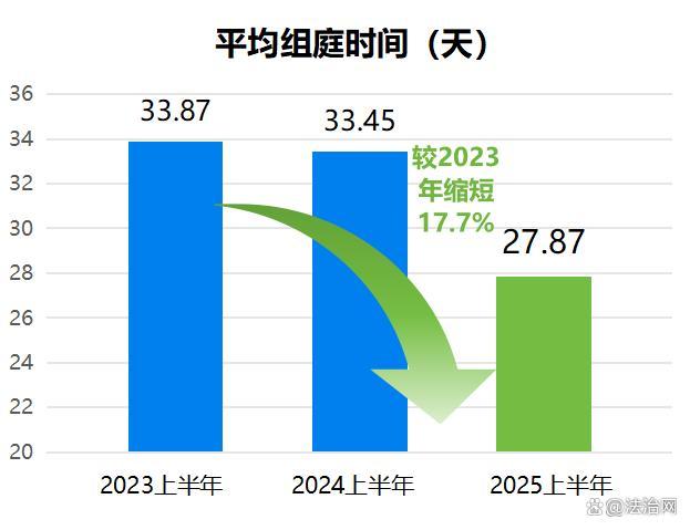 2025年上半年平均組庭時(shí)間壓縮至27.87天,較2024年上半年的33.45天縮短16.7%,較2023年上半年的33.87天縮短17.7%。通過組庭耗時(shí)的持續(xù)壓縮,案件進(jìn)入實(shí)體審理環(huán)節(jié)的效率大幅提升,為案件高效審理奠定了堅(jiān)實(shí)基礎(chǔ)。