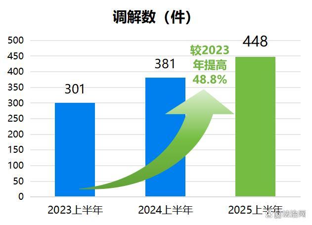 2025年上半年,以調(diào)解方式結(jié)案448件,較2024年上半年的381件提高17.6%,較2023年上半年的301件增幅高達(dá)48.8%,數(shù)量實(shí)現(xiàn)跨越式增長。調(diào)解案件數(shù)量的顯著增加,有力促進(jìn)了矛盾糾紛的實(shí)質(zhì)性化解,提升了貴仲的仲裁公信力和群眾滿意度。