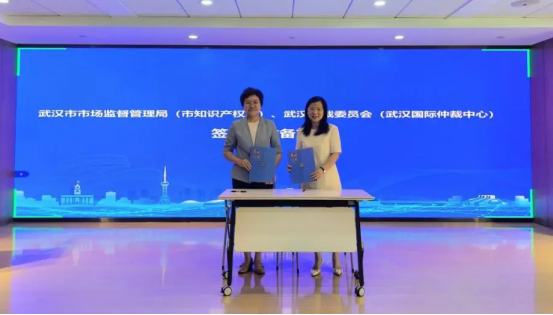 簽約儀式環(huán)節(jié),武漢市市場監(jiān)督管理局(武漢市知識(shí)產(chǎn)權(quán)局)黨組成員、副局長夏蕾和武漢仲裁委辦黨組書記、主任羅平分別代表雙方單位簽署合作備忘錄。