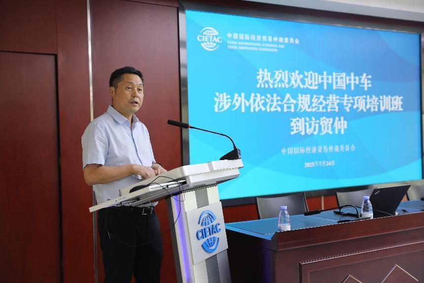 7月24日,中國中車集團(tuán)有限公司(簡稱“中車集團(tuán)”)涉外依法合規(guī)經(jīng)營專項培訓(xùn)班學(xué)員到訪中國國際經(jīng)濟(jì)貿(mào)易仲裁委員會(簡稱“貿(mào)仲”)并開展交流學(xué)習(xí)。貿(mào)仲副主任兼秘書長王承杰,中國人民大學(xué)法學(xué)院副院長丁曉東,中車集團(tuán)法律部部長張世東出席活動并先后致辭。