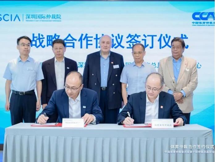丁濤代表中國(guó)體育仲裁委員會(huì)及國(guó)家體育總局體育仲裁中心,劉曉春代表深圳國(guó)際仲裁院(粵港澳大灣區(qū)國(guó)際仲裁中心)簽署戰(zhàn)略合作協(xié)議,以服務(wù)體育強(qiáng)國(guó)建設(shè)和促進(jìn)國(guó)際著名體育城市建設(shè)為目標(biāo)開展深度合作、協(xié)同創(chuàng)新。梁定邦、張劍、盧松、熊德昌、王桂壎共同見證簽約。