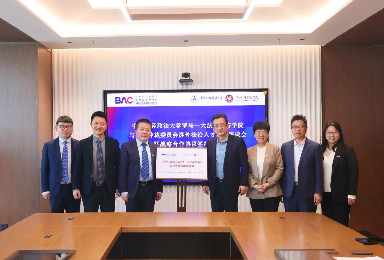 座談會后,雙方簽署《戰(zhàn)略合作協(xié)議》,并共同為“中南財經(jīng)政法大學(xué)羅馬一大法與經(jīng)濟學(xué)院實習(xí)與就業(yè)基地”揭牌。雙方均表示,期待通過共建實習(xí)與就業(yè)基地、聯(lián)合開展主題研討、加強學(xué)術(shù)交流與實務(wù)合作等方式,進一步提升學(xué)生的實踐能力和國際視野,推動涉外法治人才培養(yǎng)取得實質(zhì)性成效。