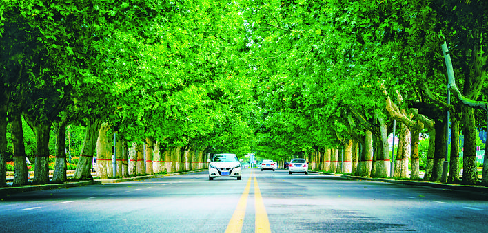 8月,酷暑難耐的盛夏,道路兩側(cè)隨處可見的高大樹木,形成濃濃樹蔭,為人們遮蔽刺眼的陽光。走累了,街頭花壇邊的座椅可為你提供小憩的場所。旁邊,白的、粉的、黃的、紫的花兒,隨風(fēng)搖曳、翩翩起舞,任你盡情欣賞。