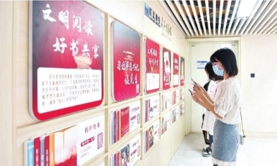 在位于黃浦路地鐵站的全市首個(gè)“武漢文明空間”,乘客可以閱讀好書。圖為乘客在武漢地鐵有聲圖書館掃碼找書。長(zhǎng)江日?qǐng)?bào)記者許魏巍 攝