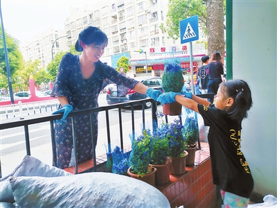 社區(qū)兒童參與打造園藝長(zhǎng)廊。 本報(bào)記者 趙梓 攝