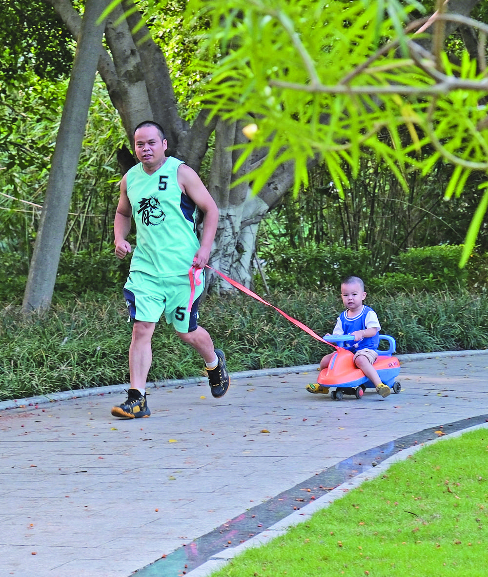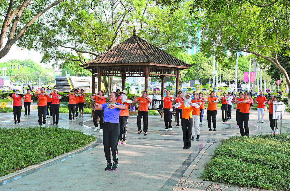 ②銅鼓公園內(nèi)的小廣場成了市民鍛煉身體的好地方。