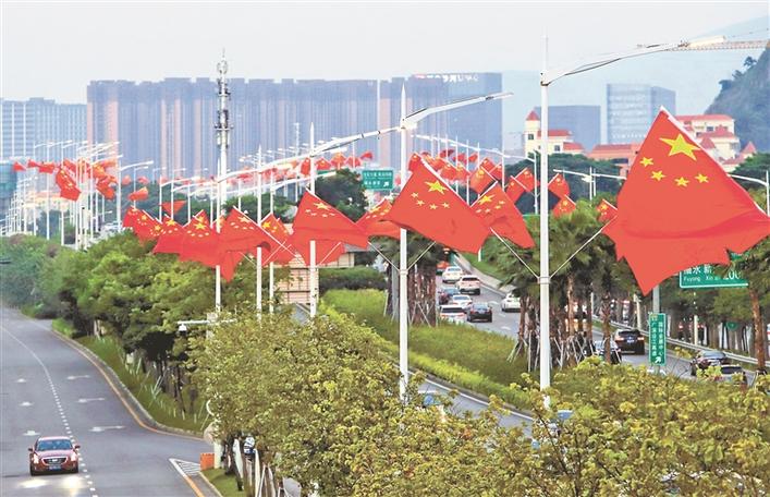 在重要節(jié)假日,城市道路路燈桿上懸掛國旗,“中國紅”成為了最美主題色。