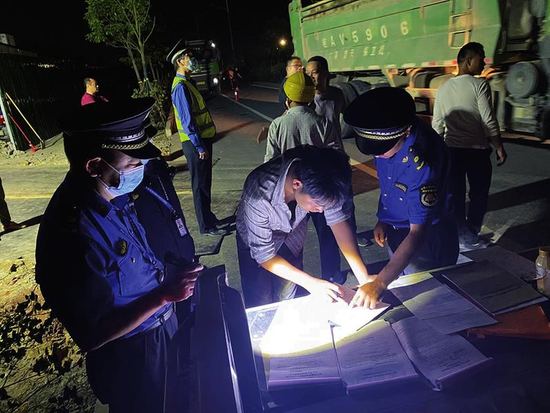 “您好!我們是南寧市城管支隊執(zhí)法人員,檢查中發(fā)現(xiàn)你們工地存在車輛出入口未設(shè)置沖洗設(shè)施等問題,現(xiàn)要求你們及時改正?!苯冢枪軋?zhí)法隊員合理規(guī)劃每日巡查線路,實行“白+黑”出勤模式,全天候全覆蓋巡查,加大對重點區(qū)域、路段和時段的巡查力度,對做得不到位的建筑工地、消納場立即下達整改通知書,限期對存在問題進行整改,通過“常巡查、常復查、常督促”的執(zhí)法方式,將揚塵污染等問題解決在萌芽狀態(tài),持續(xù)擦亮“南寧藍”這張城市名片。
