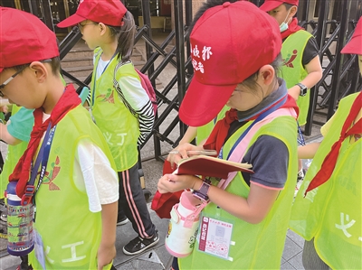 10月2日,氣溫已經(jīng)突破30℃,一群身穿“城管義工”綠馬甲的寧波晚報(bào)(現(xiàn)代金報(bào))小記者出現(xiàn)在鼓樓街道,他們熟練地?fù)炖?、撿煙蒂、扶單車?/p>