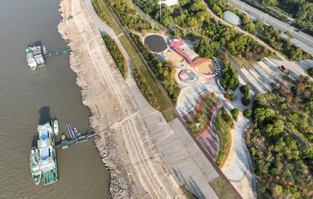 這得益于幾年前的武青堤堤防江灘綜合整治工程,將防洪功能與城市景觀自然融合,還江于民?!扒嗌浇瓰┎捎谩昂>d城市”建設(shè)理念。”武漢生態(tài)環(huán)境設(shè)計(jì)研究院有限公司景觀設(shè)計(jì)師熊穎介紹,大量的植被以及緩坡、下沉式生態(tài)草溪和雨水花園,讓雨水通過(guò)景觀水系內(nèi)的植物根系生態(tài)過(guò)濾后,補(bǔ)充地下水。