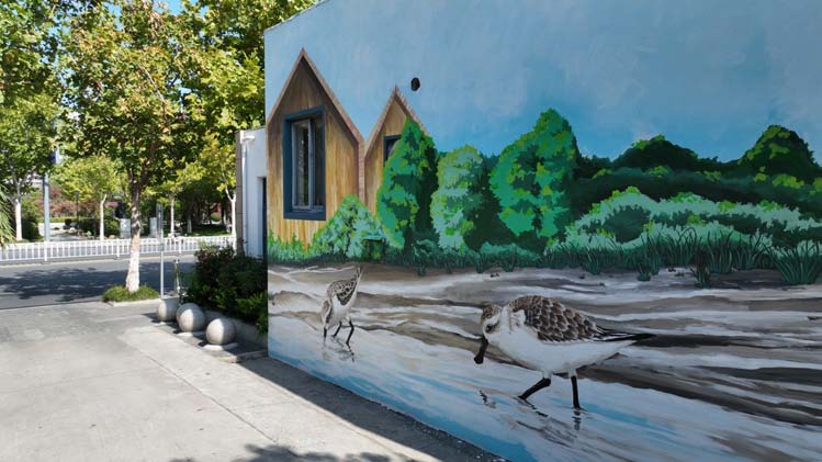 這邊公廁外立面粉刷一新,那邊墻面彩繪美輪美奐。在廣場路公廁西面墻上,一幅栩栩如生的勺嘴鷸墻面畫吸引不少市民駐足觀看。該墻面畫長9米、寬4.5米,含濕地、勺嘴鷸、森林、小木屋等東臺元素,描繪出一對“小勺子”在條子泥濕地自由覓食的生動景象,展現(xiàn)了人與自然和諧共生的美好圖景?!霸趯嶋H作畫過程中發(fā)現(xiàn)墻面有個窗戶,通過構(gòu)思把窗戶融合到畫面中的小木屋里去了。”繪畫老師朱進華告訴記者,物畫融合也是這幅畫的亮點之一。