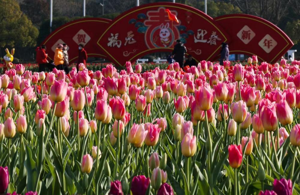 法治網(wǎng)訊(李佳靜 張黎哲)近日,位于浙江省寧波市鄞州區(qū)政府南側(cè)的鄞州區(qū)文化廣場內(nèi),各色郁金香凌寒綻放。為了營造新春喜慶氛圍,鄞州區(qū)綜合行政執(zhí)法局園林部門在該區(qū)域?qū)iT打造“郁金啟春”主題花展,以紅、橙、黃三色郁金香為主打,選用紫衣王子、紅燈籠、卡羅拉等9個品種共4萬余株郁金香,布展面積2500余平方米。