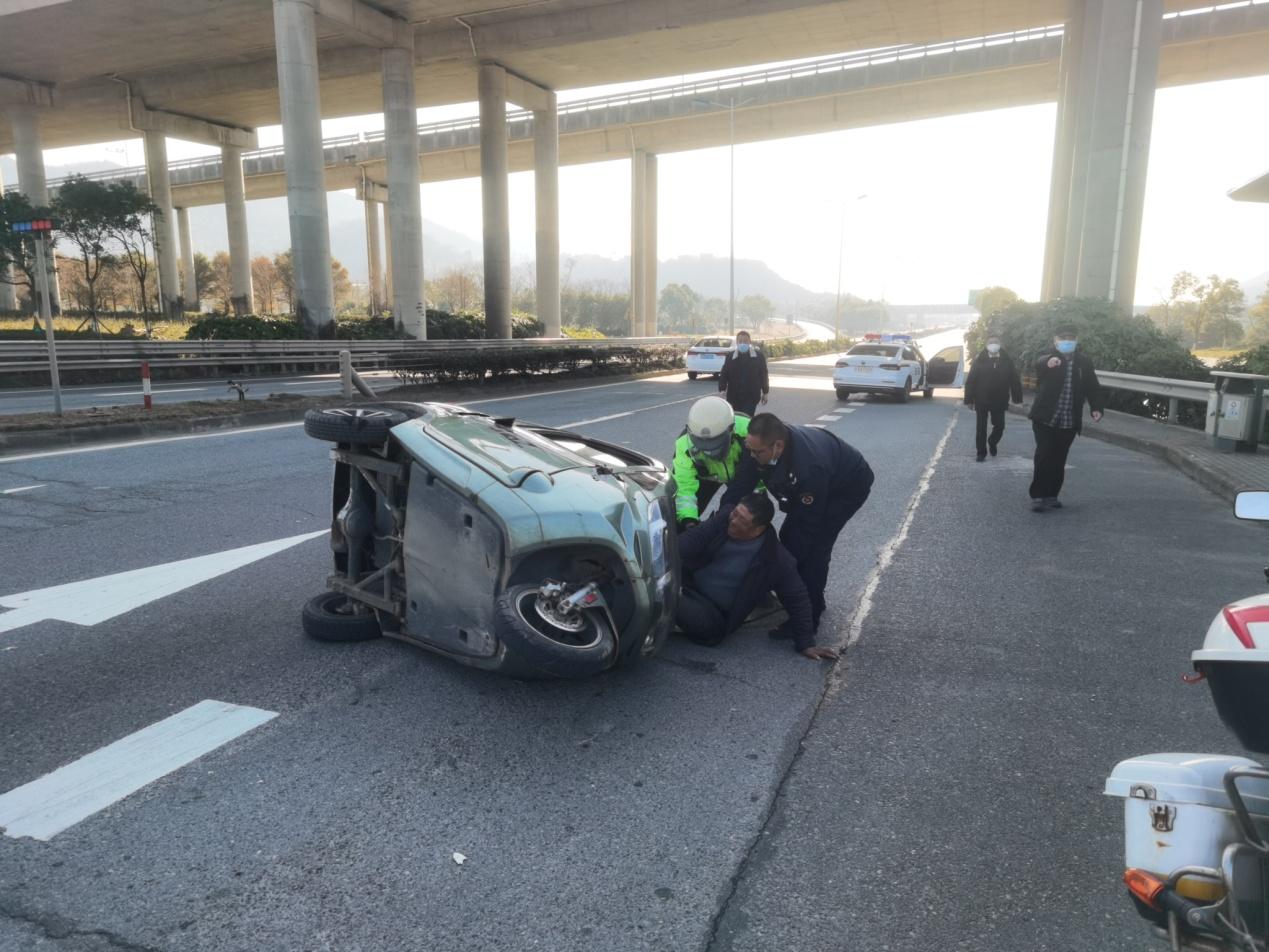 看到這一情景,正在后方行駛的隊(duì)員立刻靠邊停車(chē),一位隊(duì)員立刻幫助疏解交通,指揮過(guò)往車(chē)輛注意避讓,其余兩位隊(duì)員跑上前去查看情況。隊(duì)員馮光盛第一個(gè)趕到側(cè)翻的三輪車(chē)邊,他發(fā)現(xiàn)駕駛員老大爺連連喊著:“痛、痛……”馮光盛打算將大爺從車(chē)底扶出,但發(fā)現(xiàn)其雙腿被壓難以直接拉出。隊(duì)員蔡善康趕緊喊路過(guò)的熱心群眾幫忙,此時(shí)交警和北侖區(qū)法院的工作人員路過(guò)也趕緊停下車(chē)跑來(lái)幫忙?!耙欢 痹诒娙撕狭ο?,三輪車(chē)很快被抬起,馮光盛立即將大爺拉出。隊(duì)員們將大爺扶到路邊休息,詢問(wèn)傷情,剩下的人則合力將三輪車(chē)挪移至道路外的安全地帶。