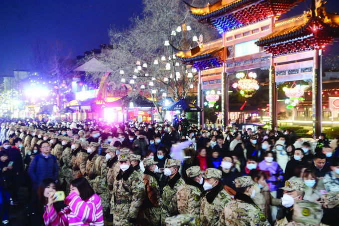 今年是南京秦淮燈會三年來首次恢復線下舉辦,從春節(jié)假期內開始,夫子廟景區(qū)人流量就始終高漲。為了確保安全,除了夫子廟景區(qū)內有大量武警、公安、消防等多部門投入大量力量,在景區(qū)周邊,還有大量城管執(zhí)法人員堅守保障。