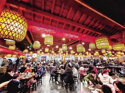 “隨著洛邑古城在抖音上成為最受歡迎的熱門‘漢服打卡地’,店里的人氣更旺了?!倍艍舫空f,春節(jié)期間,大廳每餐能翻臺3次以上,考慮到來景區(qū)游玩的外地游客居多,他們推出了觀景包間不翻臺、不限時等服務(wù),提升顧客的體驗感和舒適度,助推餐飲市場復(fù)蘇。