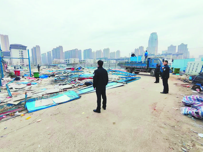 3月20日,記者從合肥市包河區(qū)城管局獲悉,近日,該區(qū)方興城管大隊協(xié)助葛洲壩項目工地人員對該處6200平方米超期臨時工棚進行拆除。