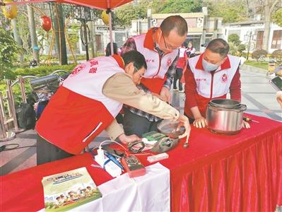 帶上萬能表、螺絲刀、“士巴拿”,拖著工具箱,召集“老”伙伴,出發(fā)!2023年3月15日,一個(gè)風(fēng)和日麗的日子,粵暉家電義修隊(duì)在廣東省老干部大學(xué)的一片空地上擺開了“家當(dāng)”,開始了他們的義修活動(dòng)?,F(xiàn)場外圍,已經(jīng)有拿著待修電器的群眾排起了長隊(duì)。長長的工作臺(tái)上,各種小家電和工具一一鋪開,隊(duì)員們認(rèn)真細(xì)致地檢查小家電的故障。在他們的熟練操作下,不管是一個(gè)壞掉的電熱水壺,還是一個(gè)“停擺”的電飯煲,一番“搗鼓”之下就又可以正常運(yùn)轉(zhuǎn)了。除了需要更換零配件收取很少的成本費(fèi)以外,隊(duì)員們?nèi)橇x務(wù)為街坊們維修。很少人知道,義修家電這件事,粵暉家電義修隊(duì)已經(jīng)連續(xù)干了十年。