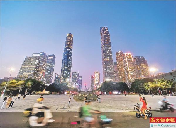 廣州各區(qū)中心城區(qū)公共休閑場(chǎng)地人群密集,電動(dòng)自行車(chē)等具有動(dòng)力裝置的滑行工具不規(guī)范使用的現(xiàn)象日益增多。圖是華燈初上的花城廣場(chǎng)。陳健明 攝