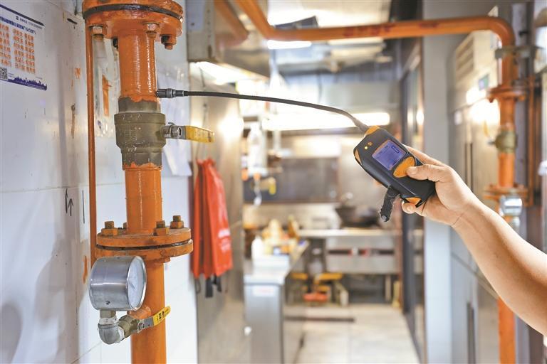 “檢查的時(shí)候,我們主要看看燃?xì)夤艿?、燃?xì)庠O(shè)備、用氣設(shè)備及附屬設(shè)施等是否腐蝕損壞,再用燃?xì)庑孤z測(cè)儀進(jìn)行泄漏檢測(cè)?!北R佑發(fā)解釋。