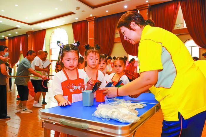 為進一步鞏固垃圾分類工作成效,引導居民樹立生態(tài)文明新理念,近日,一場主題為“推進垃圾分類倡導綠色環(huán)保生活理念”的宣傳活動,走進了北京市昌平區(qū)北七家鎮(zhèn)羊各莊新村?;顒硬捎谩翱破?游戲”的方式,吸引眾多居民參與游戲互動、學習垃圾分類知識。圖為志愿者正在為小朋友講解垃圾分類知識。(肖飛)