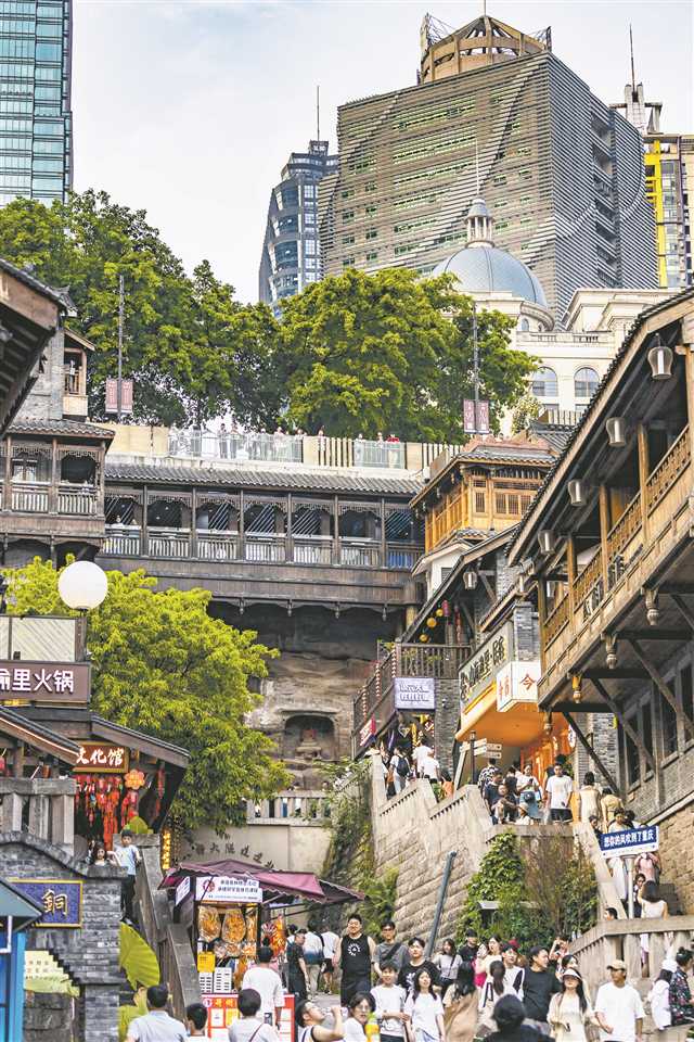 十八梯運營管理方負(fù)責(zé)人表示,在規(guī)劃引領(lǐng)下,十八梯以“老重慶”文化為脈絡(luò),以“真山城”建筑為基礎(chǔ),以“新生活”業(yè)態(tài)為引擎,著重展現(xiàn)了巴渝傳統(tǒng)風(fēng)貌,并挖掘活化傳統(tǒng)文化,實現(xiàn)了文商旅城融合發(fā)展。