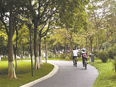 沿著香雪大道來到蘿崗濕地公園入口處,一株茂密的榕樹格外引人注目。記者沿著榕樹旁的綠道走進濕地公園,道旁綠樹成蔭,蟲鳴鳥鳴聲聲入耳,綠道上還有三三兩兩遛彎或跑步的市民,稍遠處則是湍湍流淌的南崗河。鄒先生和朋友剛跑完一個來回,大汗淋漓地在路旁拉伸:“搬來附近大半年了,基本每天這個時段來跑一圈,沿著綠道跑上兩公里,空氣清新,十分舒服?!?/p>