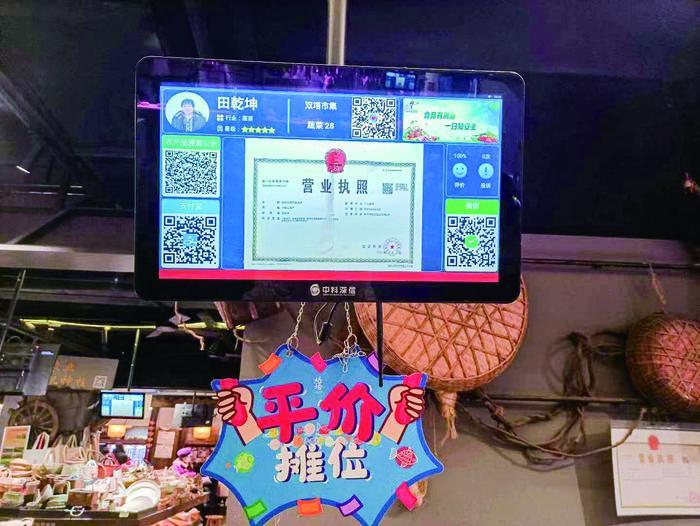 經(jīng)營戶檔案、菜價、營業(yè)執(zhí)照、溯源公示、付款二維碼……在雙塔市集,這些信息全部被集中在一塊清晰的顯示屏上,一目了然,這樣的顯示屏是生鮮區(qū)中每個商戶的“標配”。對于老百姓們最關(guān)心的農(nóng)藥殘留問題,也能在顯示屏上找到答案。在雙塔市集,每年被送檢的樣品約1.1萬個。以天為單位,在規(guī)定時間檢測完畢后,結(jié)果被上傳至政府網(wǎng)絡(luò)平臺,同時在顯示屏上進行公示,方便查看,讓市民更加放心、舒心。