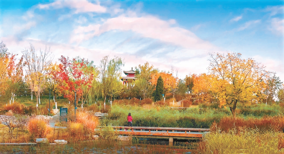 家住云景里小區(qū)的“90后”趙朋經(jīng)常和妻子來這里遛娃?!耙郧斑@里是幾處魚塘,還有餐館,后來池塘漸漸干涸了,開車經(jīng)過總是暴土揚(yáng)塵的,更別提什么景色了。沒想到現(xiàn)在竟然變成了公園,還有那么多好看的彩葉,家門口就能賞秋景,大家都很高興?!?/p>