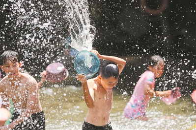 孩子們快樂地戲水。