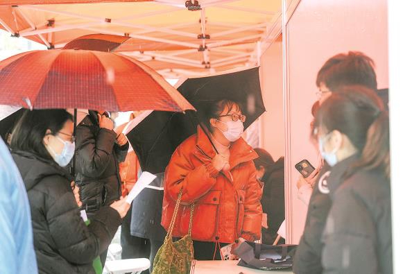 2月21日,“春風(fēng)行動”招聘活動在鐵路上海站北廣場舉辦。盡管天氣不佳,仍吸引了眾多求職者 記者 陳夢澤 攝