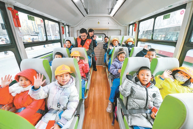 通學(xué)195路是石景山區(qū)首批開(kāi)通的通學(xué)線路之一。臨近發(fā)車,“小豆包”在家長(zhǎng)陪伴下陸續(xù)抵達(dá)。“今天知道要坐通學(xué)公交,非常興奮,一大早就爬起來(lái),自己穿衣服、刷牙。孩子覺(jué)得自己能獨(dú)立坐公交車,像個(gè)小大人了?!奔议L(zhǎng)史姍姍說(shuō),她家就住對(duì)面小區(qū),通學(xué)車方便又安全,價(jià)格也實(shí)惠。