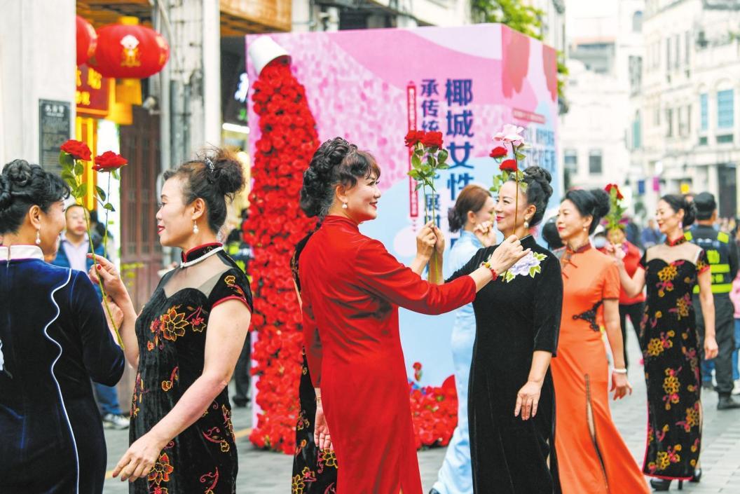 3月8日,一場(chǎng)以“承傳統(tǒng)文化 展時(shí)代風(fēng)采”為主題的椰城女性歡樂(lè)派活動(dòng)在騎樓老街舉辦,時(shí)尚與傳統(tǒng)在古樸的街巷中碰撞出“包容之美”。記者 康登淋 攝