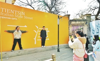 河北區(qū)意式風(fēng)情區(qū)打造沉浸式場景,游客在City Walk中定格美好。 記者 吳迪 攝
