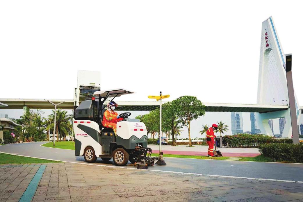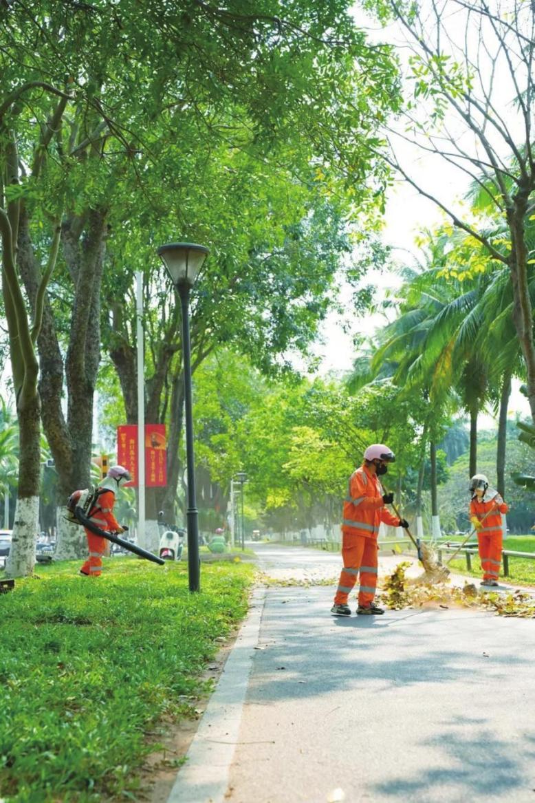 ??谟窈烫锕炯訌娂罀邊^(qū)保潔力量。海口玉禾田公司供圖