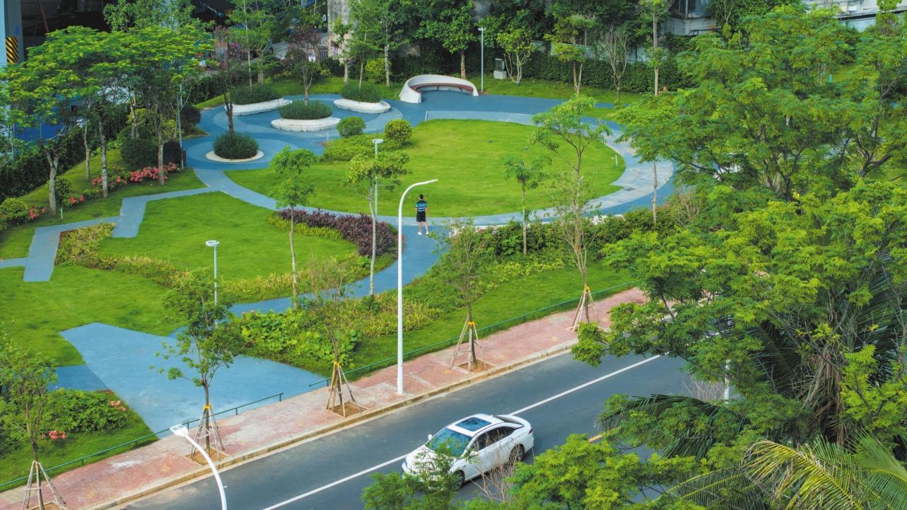 5月26日,俯瞰位于龍華區(qū)南沙路的“口袋公園”,入目一片綠意盎然。如今,“推窗見綠、出門入園”的生活愿景對于椰城市民愈發(fā)觸手可及。