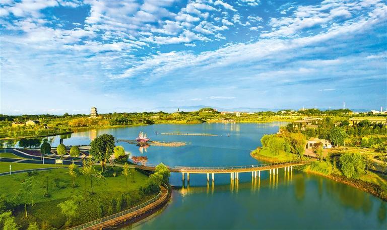 6月11日,重慶市墊江縣三合湖濕地公園。近年來,當?shù)匾越ㄔO生態(tài)宜居城市為目標,建成2000余畝濕地公園,融入“運動、智慧、濱水、文化”等理念,形成城景相融的城市生態(tài)。龔長浩 攝(中經視覺)