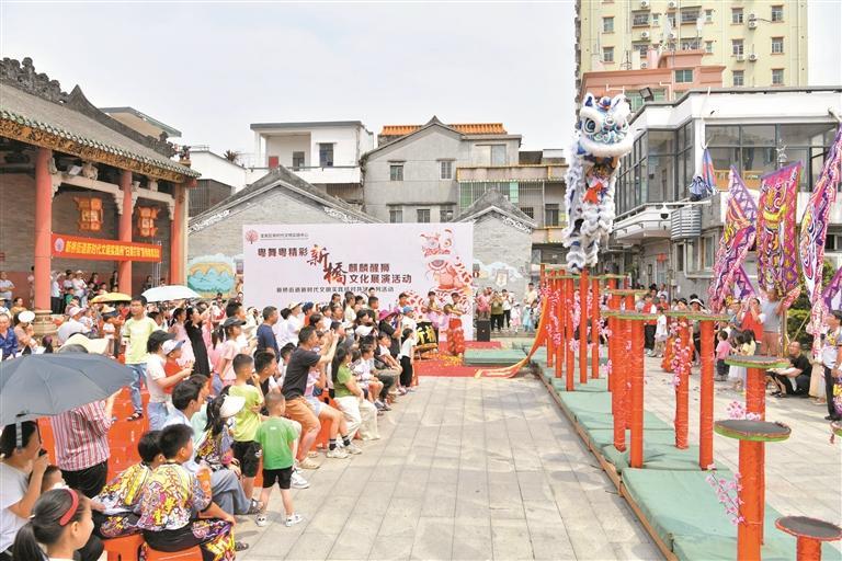 舞群獅、舞麒麟、樁獅等節(jié)目逐一上演……近日,新橋麒麟醒獅武術館的隊員們在曾氏大宗祠廣場獻上了一場精彩絕倫的武術和醒獅表演。這些隊員年齡從6歲至18歲不等,在14歲女隊長的帶領下,少年隊員們展現(xiàn)出了非凡的鼓技和醒獅技藝,彰顯了“少年強則國強”的精神風貌。
