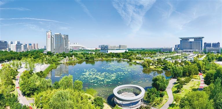 渭南市積極創(chuàng)建國家森林城市,全市林木覆蓋率達39.4%,中心城區(qū)綠化覆蓋率達42.1%,人居環(huán)境持續(xù)改善,群眾生活幸福感不斷提高。圖為六月十二日航拍的渭南人民公園。 (通訊員 彭一鵬 攝)
