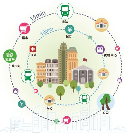 想象一下,一天的生活這樣規(guī)劃是否很幸福——早上出門(mén),在家附近的早餐店吃頓熱乎乎的餛飩,再步行15分鐘去上學(xué)或上班。居住的小區(qū)周?chē)耸袌?chǎng)、健身房、口袋公園、超市、醫(yī)院等生活配套設(shè)施一應(yīng)俱全。