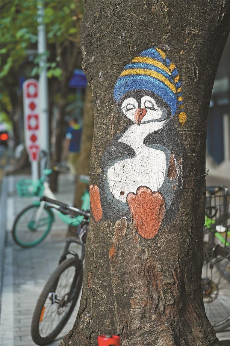 這些圖畫(huà)出自樹(shù)繪師李斯瑋之手,他曾于2020年參與了田貝兒童友好型社區(qū)美化工程的建設(shè)?!皠?chuàng)作靈感來(lái)自各種動(dòng)物、童話故事以及日常生活中的美好瞬間,涂鴉為街道帶來(lái)了更多色彩與活力,希望大家在繁忙的都市生活中能有一些意外驚喜和美的享受。”李斯瑋介紹。