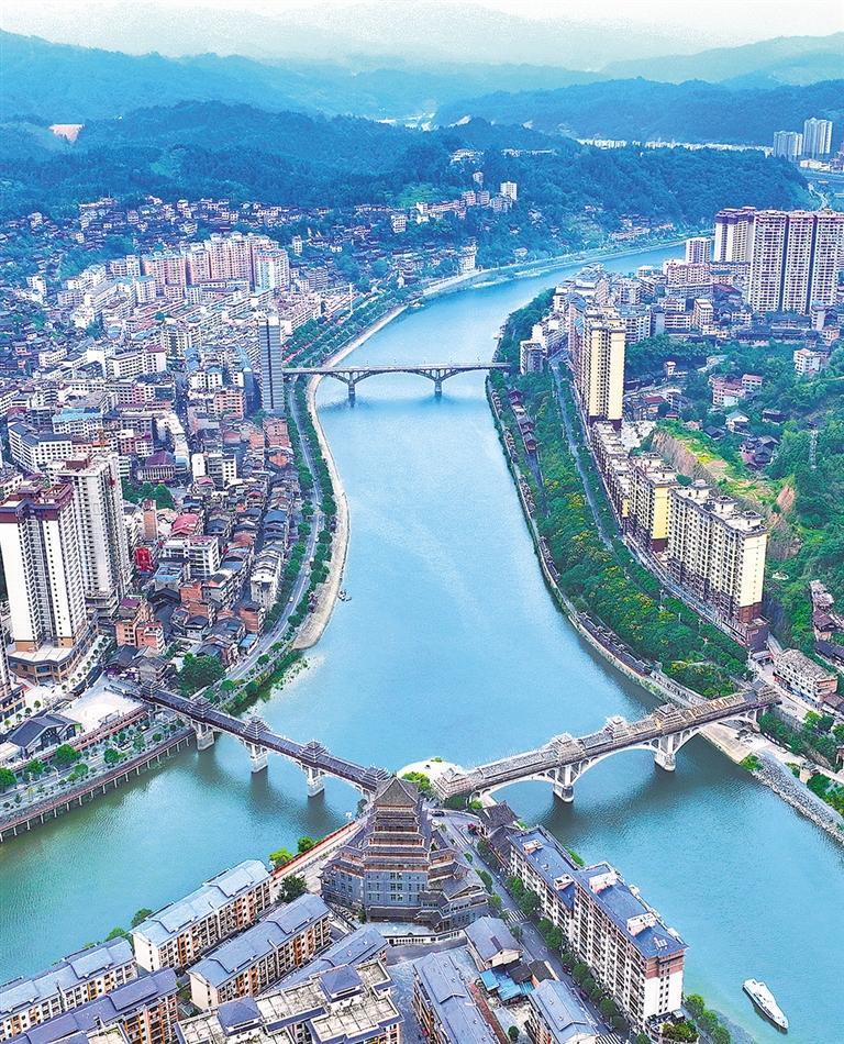 9月7日,俯瞰貴州省錦屏縣城區(qū),青山綠水、城市建筑相互映襯。近年來(lái),當(dāng)?shù)貓?jiān)持生態(tài)優(yōu)先綠色發(fā)展,著力整治清水江周邊環(huán)境,生態(tài)環(huán)境進(jìn)一步改善。姜繼標(biāo) 攝(中經(jīng)視覺(jué))