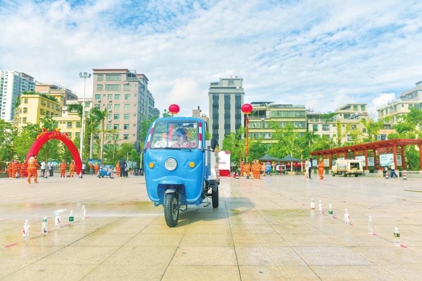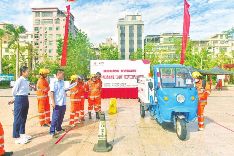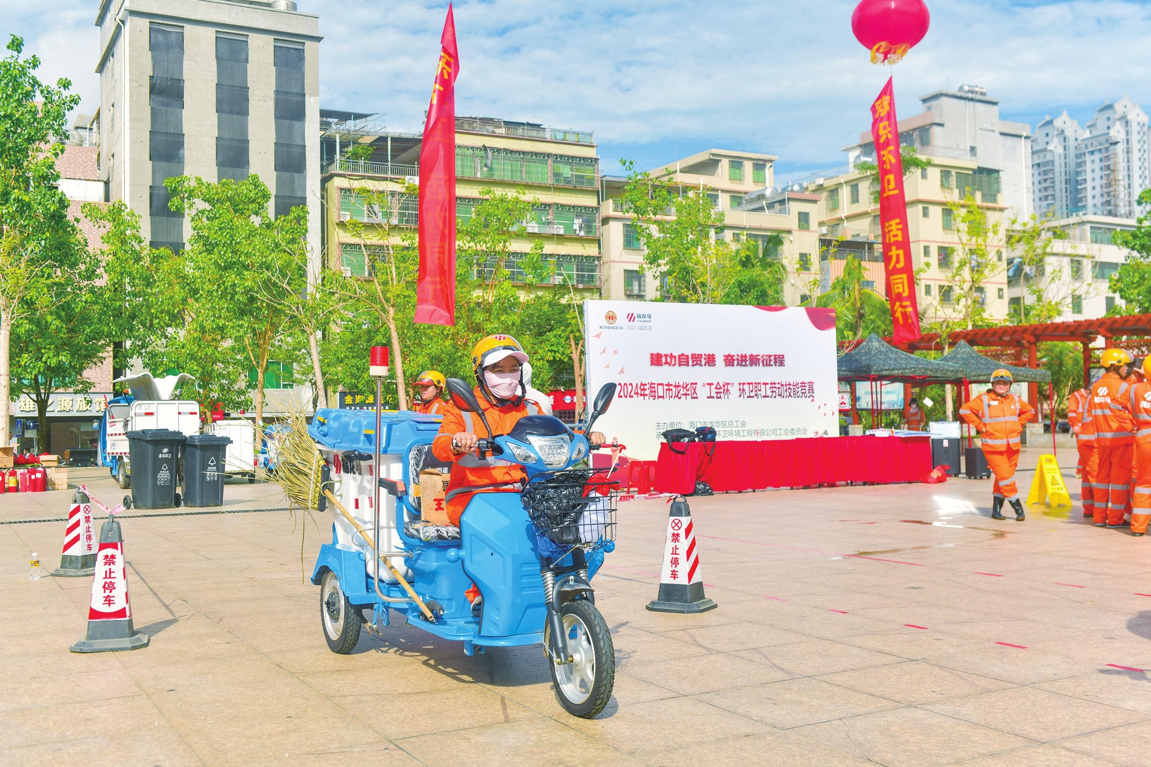 10月18日,海口市龍華區(qū)雙創(chuàng)廣場(chǎng)上熱鬧非凡,福龍馬海口公司近百名環(huán)衛(wèi)工人在進(jìn)行技能比賽。他們激情四射,將自己最好的狀態(tài)、精湛的技術(shù)展現(xiàn),贏得了陣陣歡呼。
