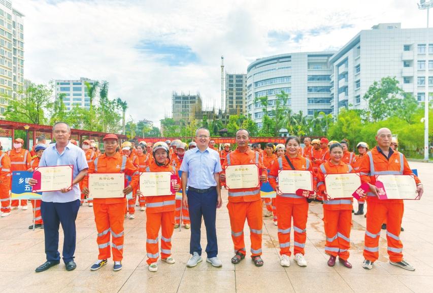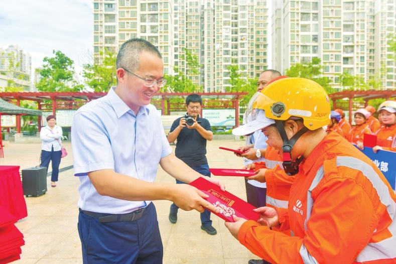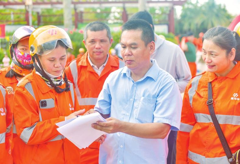 龍華區(qū)總工會(huì)黨組成員、副主席林勝雄,龍華區(qū)環(huán)衛(wèi)局副局長(zhǎng)符嬌燕,福龍馬??诠究偨?jīng)理黃彪、副總經(jīng)理邢益芳、楊志剛出席,向?yàn)槌鞘忻利愋燎诟冻龅沫h(huán)衛(wèi)工人們加油打氣,并致以誠(chéng)摯的感謝和節(jié)日的祝賀。