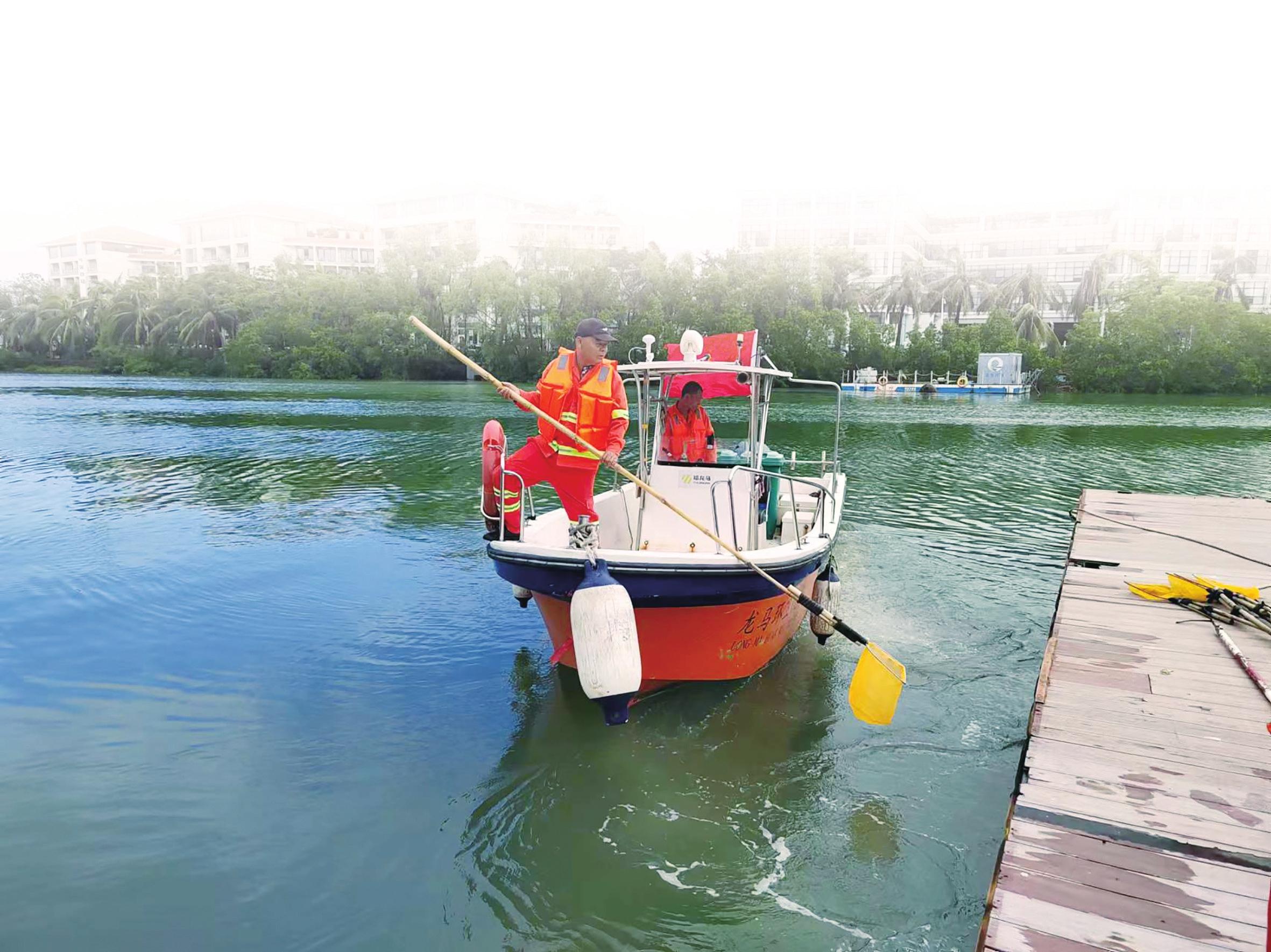 海上環(huán)衛(wèi)賽場(chǎng),長(zhǎng)桿飛舞顯身手。福龍馬??诠竟﹫D