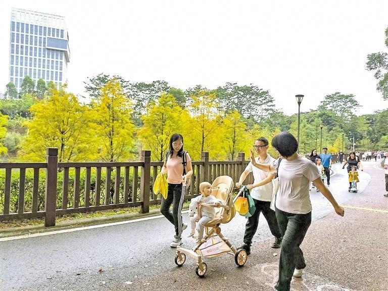 秋日的紅花嶺低碳生態(tài)公園依然入目一片青翠。公園內(nèi)既有郊野徑,也有環(huán)湖碧道、坡度舒緩的登山道。湖光山色之間,樹木郁郁蔥蔥,更有專門打造的“蝶趣園”,種類繁多的蝴蝶翩躚飛舞。
