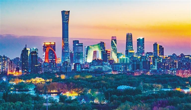 11月3日,北京商務(wù)中心區(qū)燈火璀璨,繁華的都市樓宇和相鄰的朝陽公園構(gòu)成了一幅美麗的畫卷。